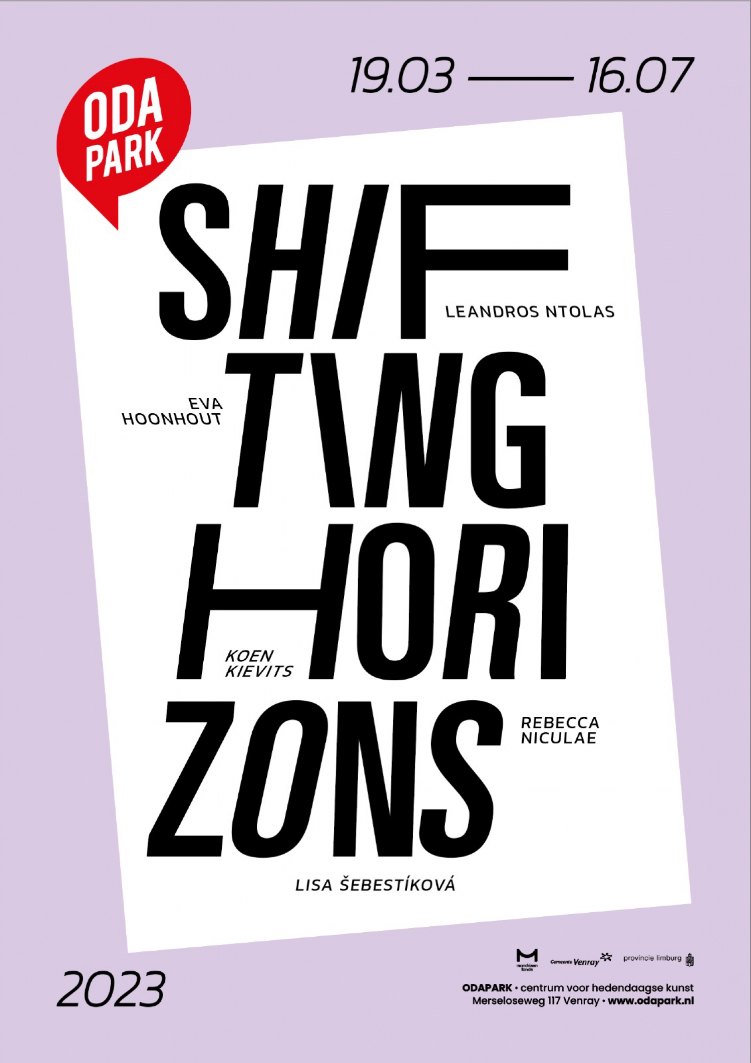 De tentoonstelling SHIFTING HORIZONS brengt een vijftal kunstenaars bijeen die allen site-specifiek werk tonen in Odapark. De kunstenaars hebben zich laten leiden door de verhalen en geografie van de omgeving. Dit is soms concreet, zoals in het werk van Lisa Šebestíková. Zij heeft zich laten leiden door de wijze waarop stuifzand zich verplaatst. En soms is dit abstract en ongrijpbaar, zoals in de video-installatie van Leandros Ntolas. De subjectiviteit van de waarneming vormde het uitgangspunt van de werken die hij voor deze tentoonstelling realiseerde.